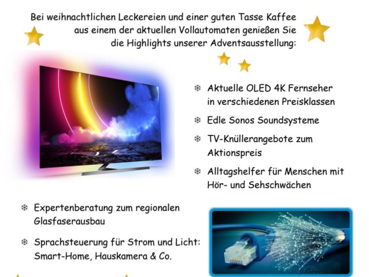 Entdecken Sie bei uns faszinierende Neuheiten aus der Welt der Unterhaltungselektronik, der digitalen Heimvernetzung und genießen Sie eine gute Tasse Kaffe zu den ersten selbstgemachten Weihnachtsplätzchen. Neu in diesem Jahr: wir sind jetzt Jura-Partner, entdecken Sie die neuesten Trends wie aromatisierten Milchschaum, vegane Milchalternativen, oder haben Sie schon einmal Cold Brew probiert?